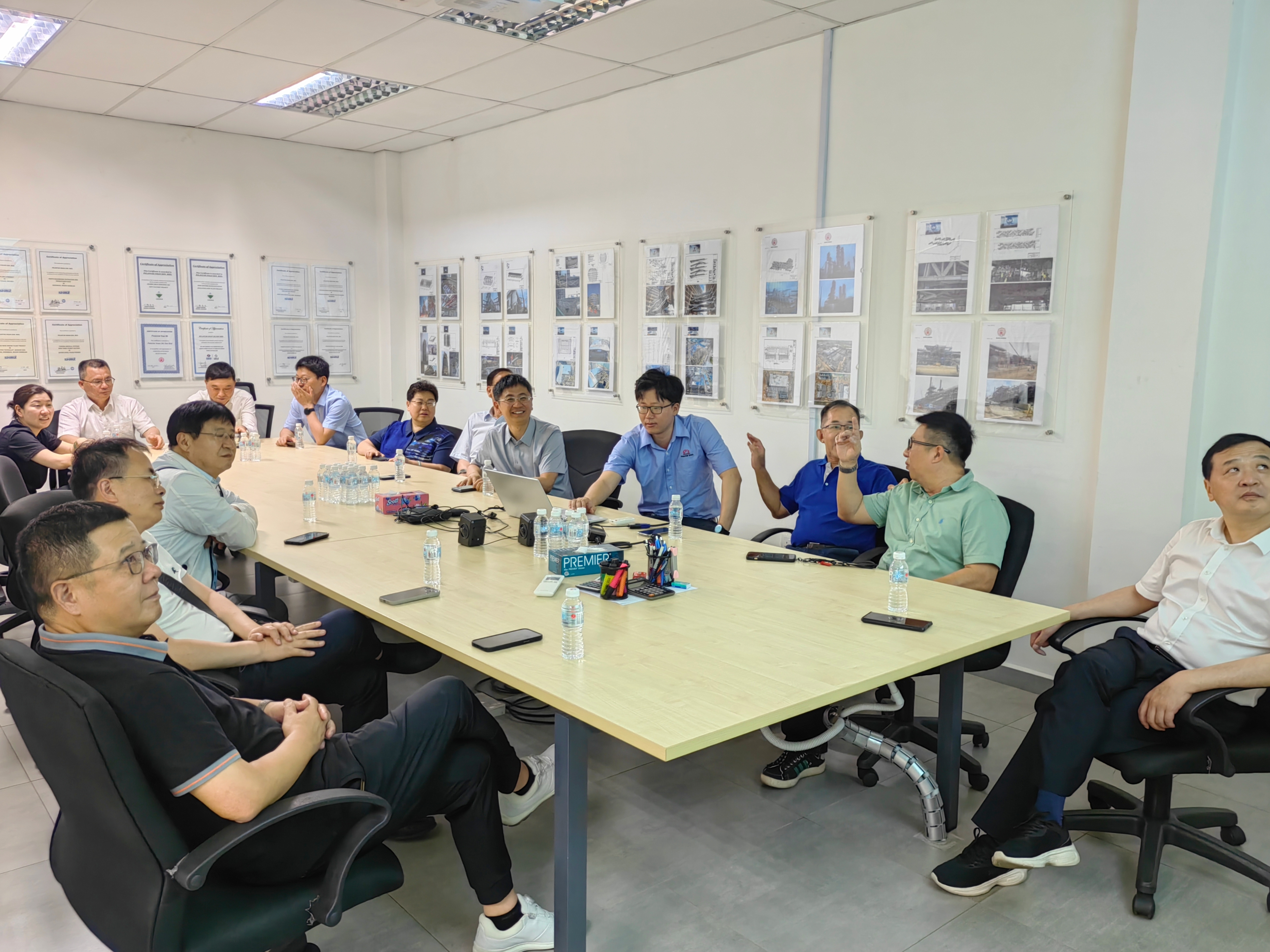 代表團前往中建鋼構馬來西亞公司交流。執行董事、拿督斯里李培華對代表團的來訪表示熱烈歡迎。副總經理兼董事項誠介紹了公司概況、東南亞市場和中資企業在海外的情況。總工程師饒家遠對中建鋼構馬來西亞公司承建的KLCC項目進行了詳細介紹。該項目總建筑面積11.68萬平方米,用鋼量約1.6萬噸。代表團成員針對該項目的深化設計、施工管理等內容展開了熱烈討論。
