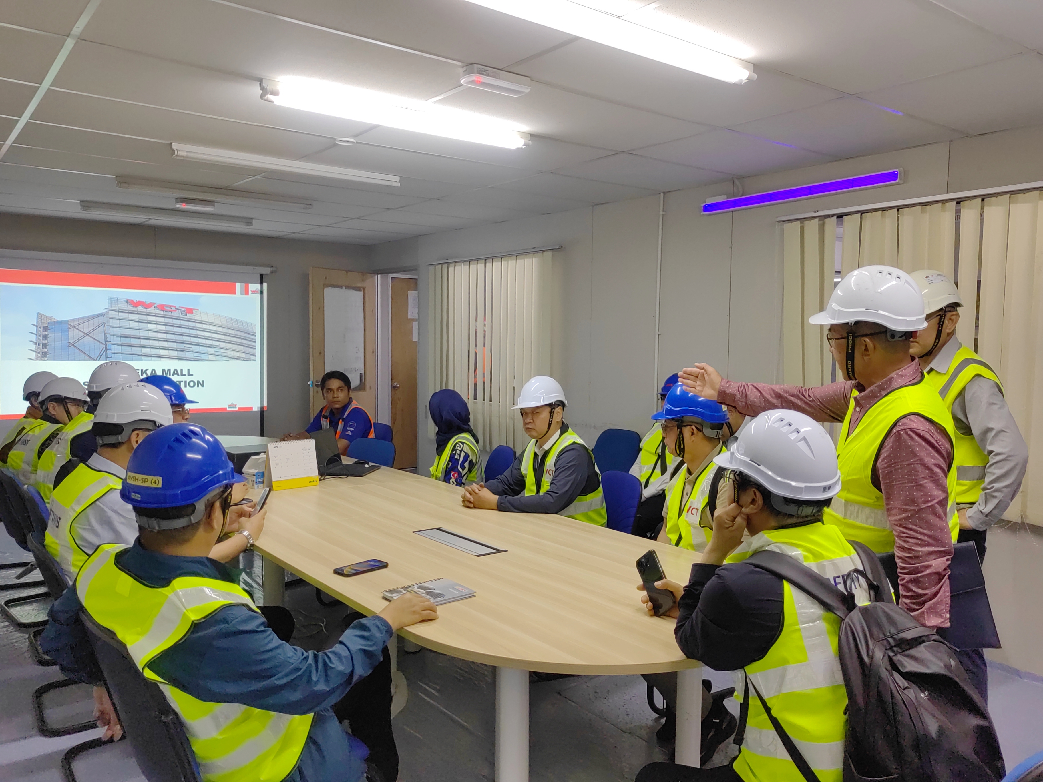 代表團前往Pelantar Insan(M) Sdn Bh鋼結構加工廠和馬來西亞默迪卡118大樓(目前世界第二高樓)附屬樓——購物商場大樓進行了考察調研,并同主要管理人員開展了深入交流。