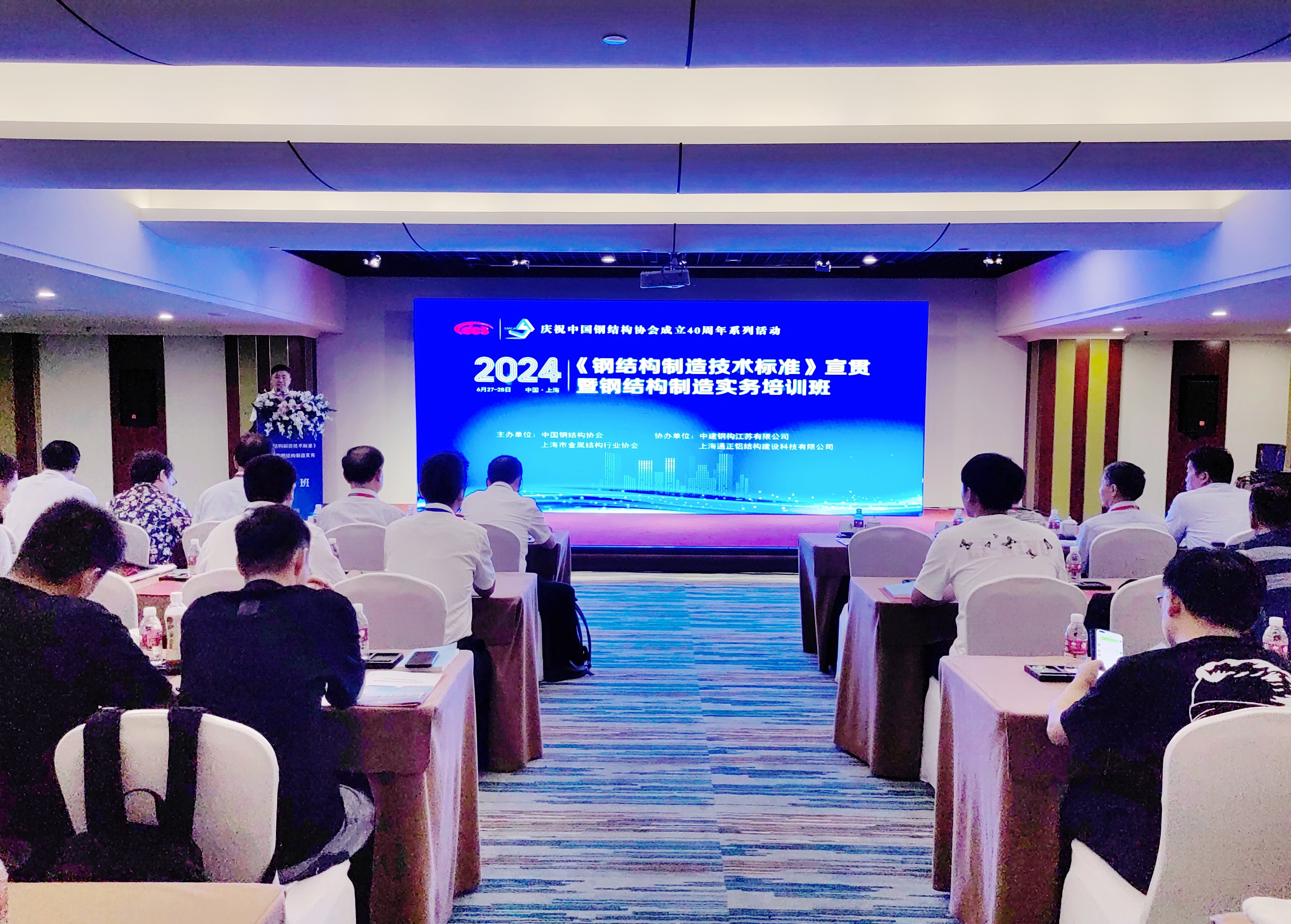 2024年6月27-28日,第九期“鋼結構制造技術標準宣貫暨鋼結構制造實務培訓班”在上海成功舉辦。本次培訓由中國鋼結構協會和上海市金屬結構行業協會聯合主辦,并得到了中建鋼構江蘇有限公司、上海通正鋁結構建設科技有限公司的大力支持。來自全國各地的100余名鋼結構制造企業負責人和生產技術人員參加培訓。