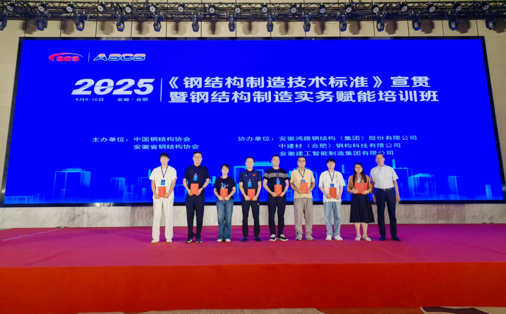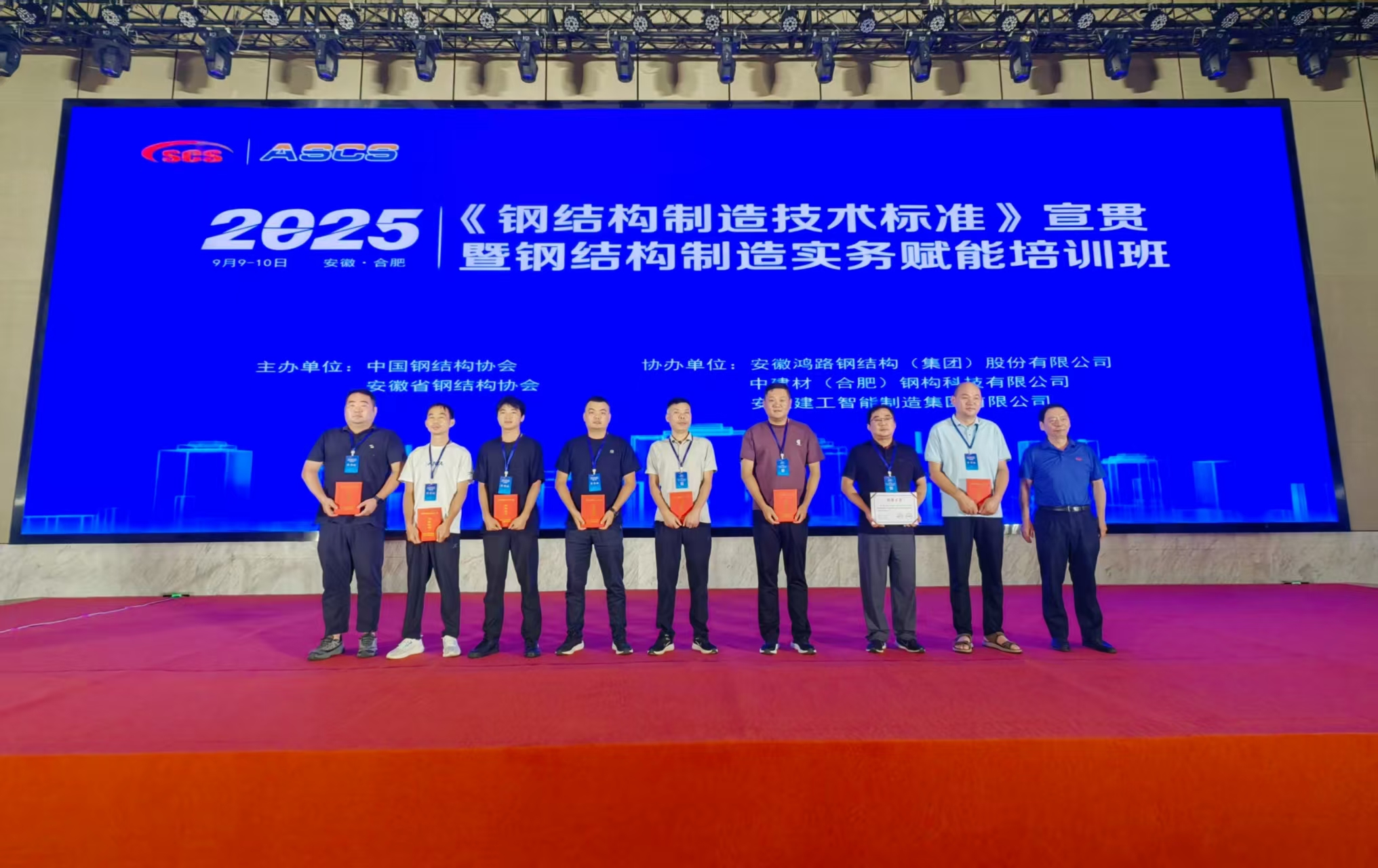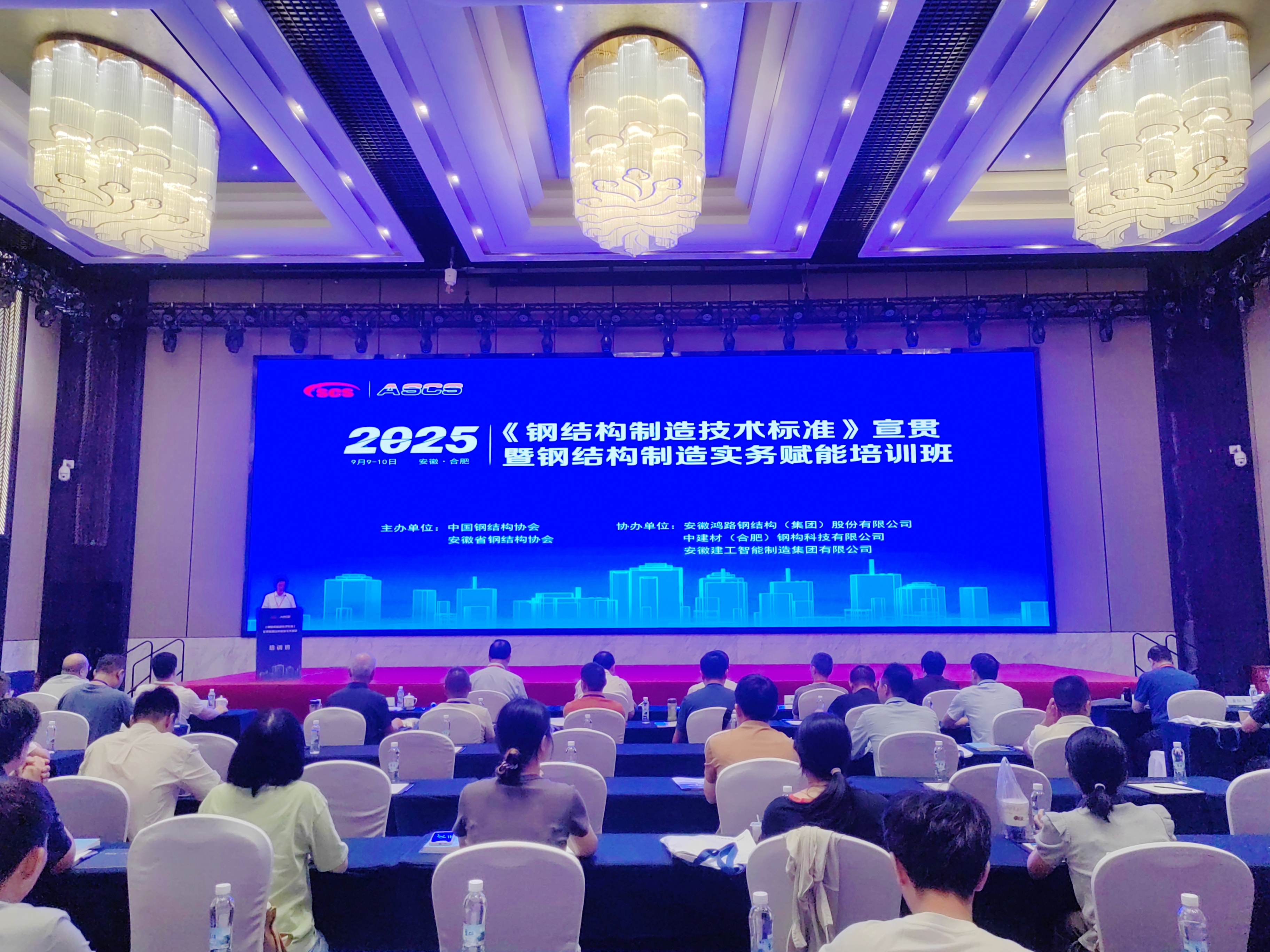 2025年9月9日至10日,2025年第三期“鋼結構制造技術標準宣貫暨鋼結構制造實務賦能培訓班”在安徽合肥成功舉辦。本次培訓由中國鋼結構協會和安徽省鋼結構協會聯合主辦,由安徽鴻路鋼結構(集團)股份有限公司、中建材(合肥)鋼構科技有限公司、安徽建工智能制造集團有限公司共同協辦。來自全國各地的120余名鋼結構制造企業的負責人和生產技術人員參加培訓。