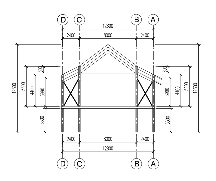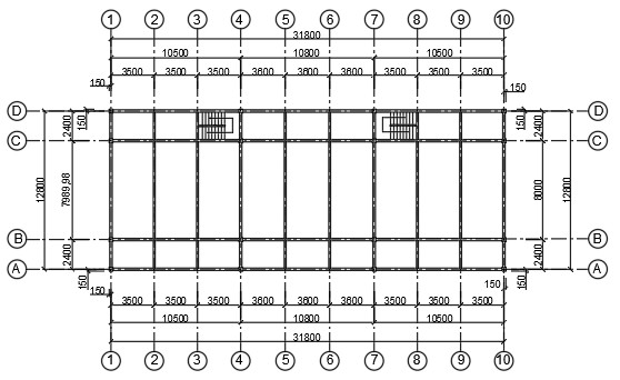 建筑為兩層輕鋼結(jié)構(gòu),長寬高分別為31.8,12.8,12.3m。