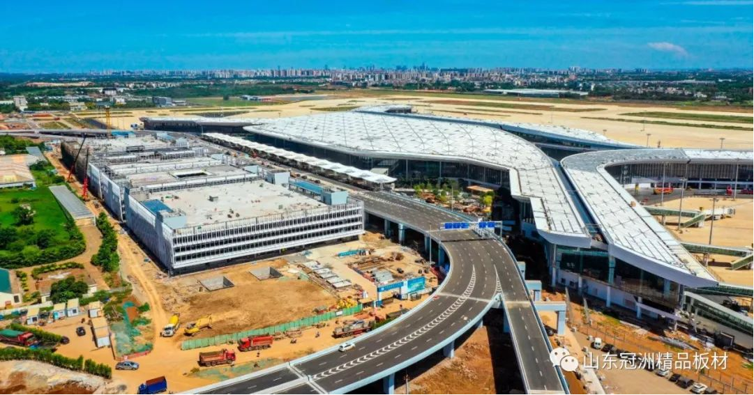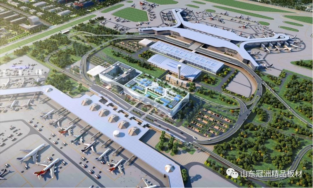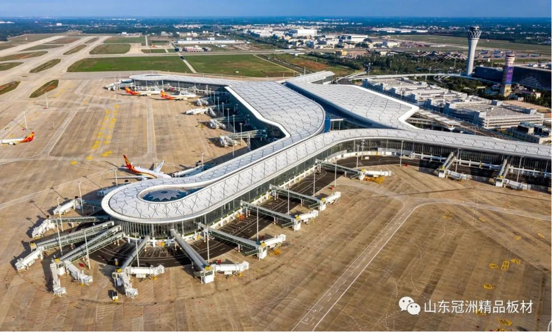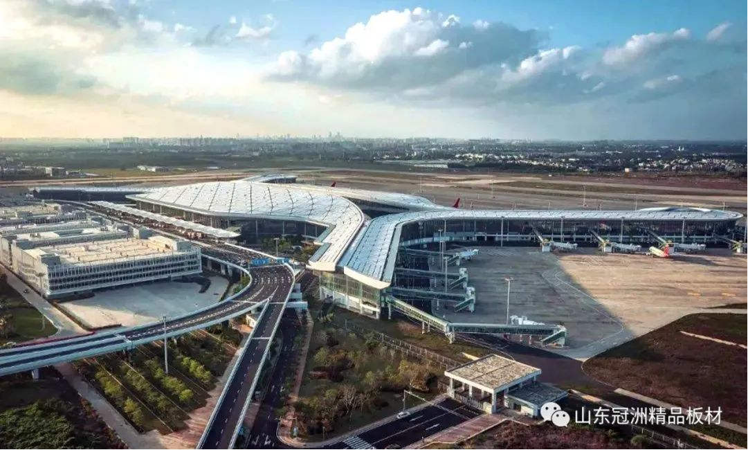 機場航站樓圍護系統選用冠洲氟碳彩涂板。