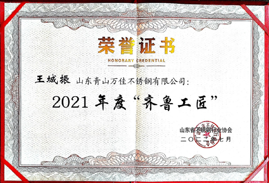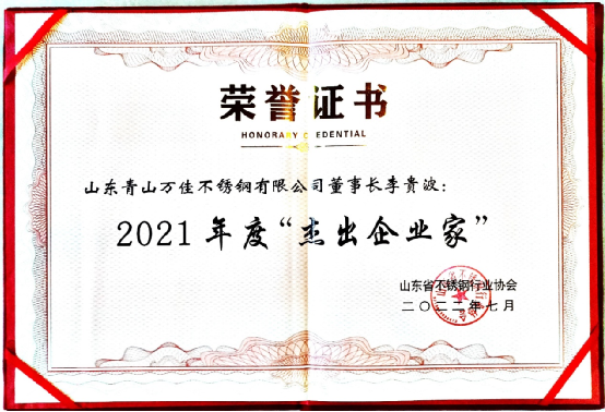 此次會議針對中國的不銹鋼產業進行了高維度、多視角的深度剖析,并對山東省的不銹鋼企業家進行了評選表彰,青山萬佳董事長李貴波被評為“杰出企業家”,總監王誠振被評為“齊魯工匠”,肯定并勉勵大家擁抱匠心精神去創新發展。